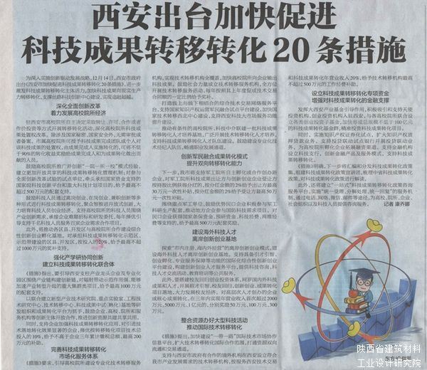 為深入實施創(chuàng)新驅(qū)動發(fā)展戰(zhàn)略,12月14日,西安市政府出臺《西安市加快促進科技成果轉(zhuǎn)移轉(zhuǎn)化20條措施》,進一步激發(fā)科技成果轉(zhuǎn)移轉(zhuǎn)化主體活力,加快科技成果向現(xiàn)實生產(chǎn)力轉(zhuǎn)移轉(zhuǎn)化,支撐絲路科技創(chuàng)新中心建設(shè),實現(xiàn)追趕超越。
